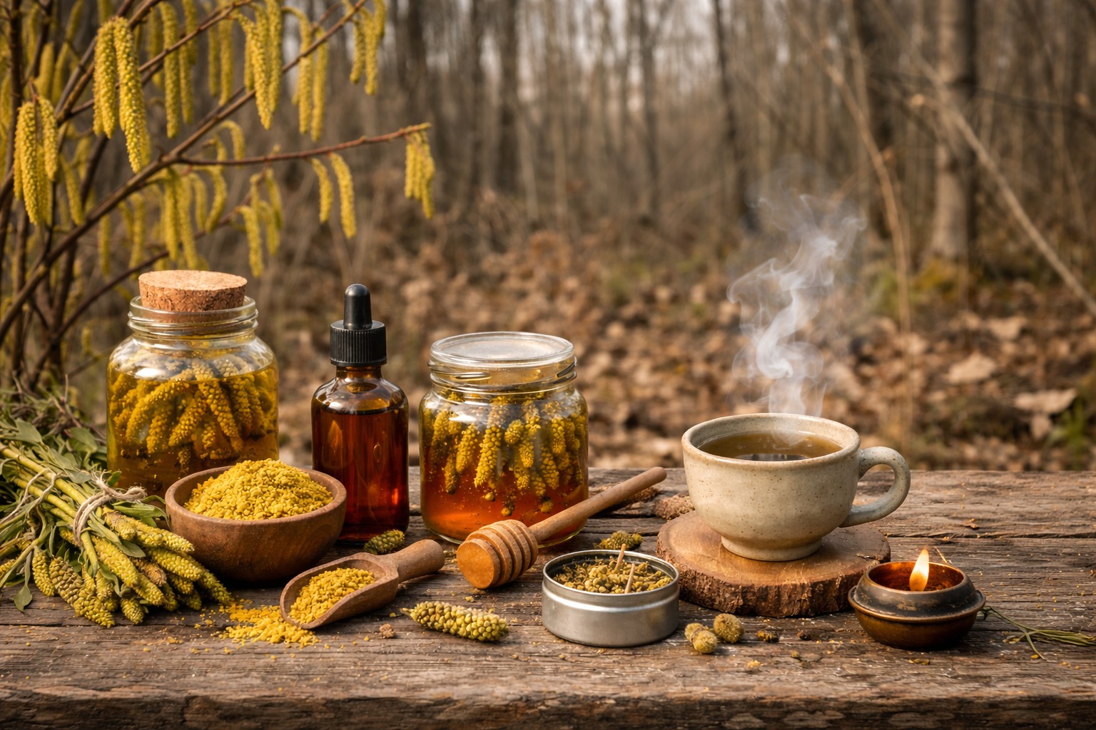 Jahňady zbieram skoro ráno, keď sú suché a les ešte mlčí. Nie všetky – vždy nechávam dosť pre strom aj pre včely, lebo rovnováha je prvý zákon liečenia. Suším ich pomaly v tieni, aby nestratili vôňu ani jemnú horkosť, ktorá prezrádza ich vnútornú silu.