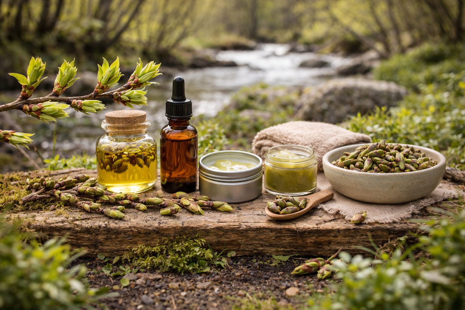 Masť z topoľových púčikov patrí medzi najznámejšie produkty. Je silná, hojivá a používa sa na rany, ekzémy, popraskanú kožu, hemoroidy aj bolestivé miesta na tele.